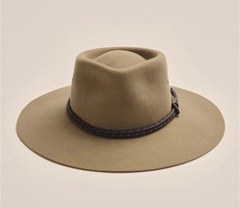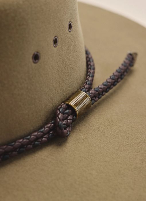 Through an age-old process of heat, water, and precise pressure, these fibres interlock to create felt, a beautifully resilient and non-woven textile that won't fray, ensuring your hat stands the test of time. This braided leather accessory is a timeless blend of craftsmanship elevated with a sleek, metal clasp. Perfect for any occasion.
