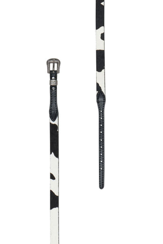 Genuine hair-on cowhide strap, buckle/keeper set, antique silver hardware