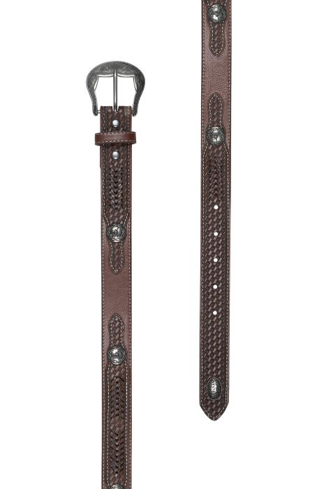 Handlace detail, tooled tab ends, longhorn conchos,