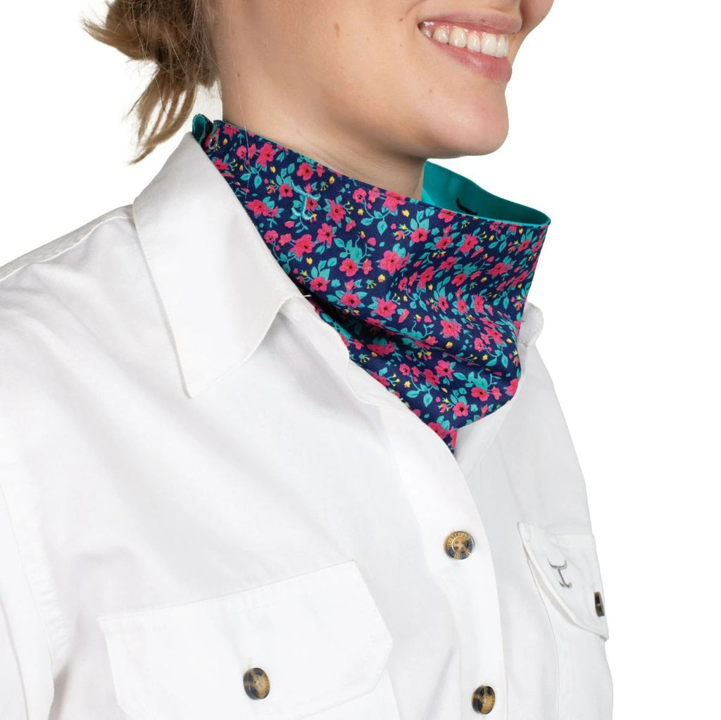Just Country Carlee Double Sided Scarf - Navy Pansies/turquoise